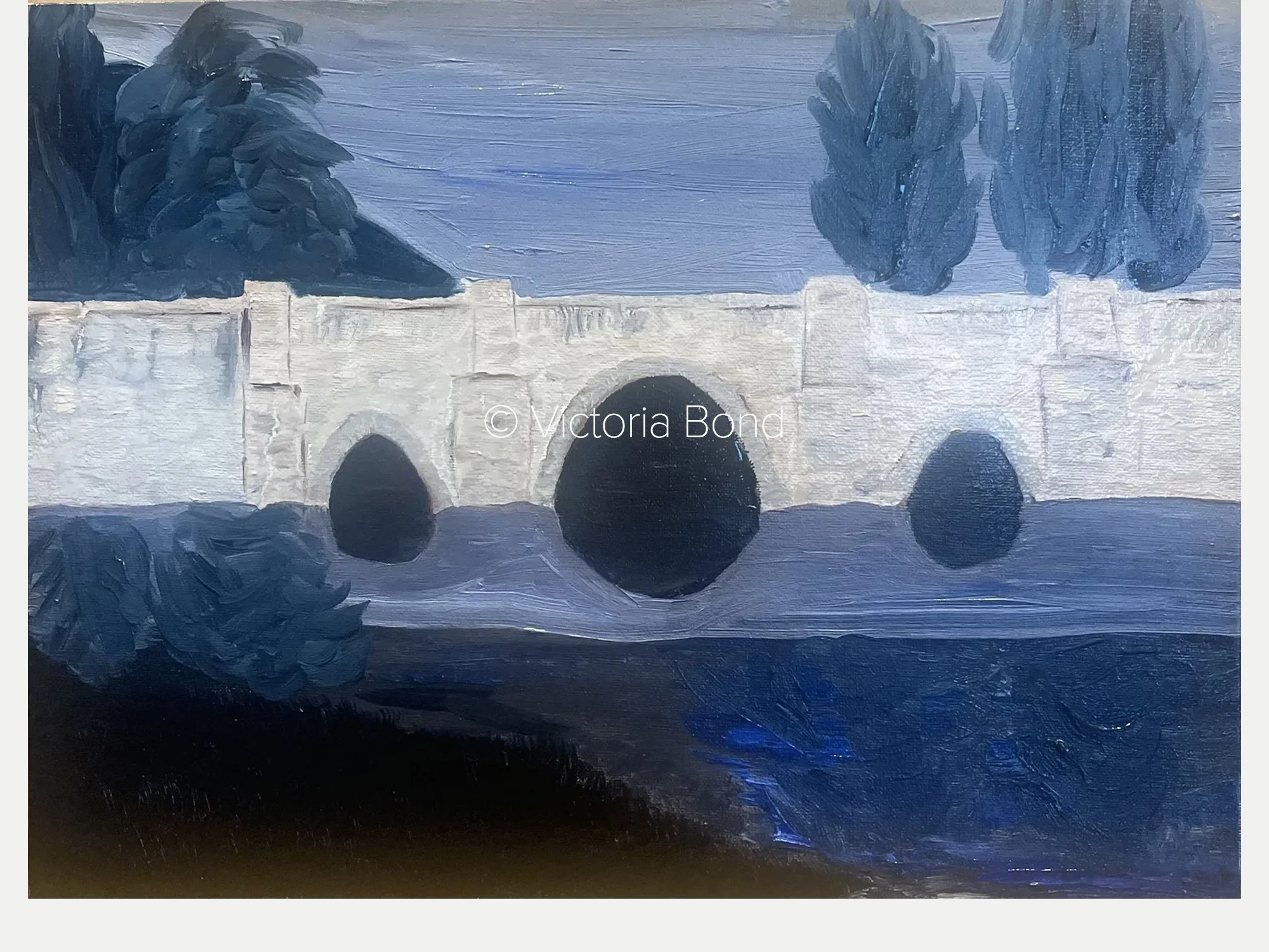NIGHT BLUES | 16X20 | OIL ON CANVASWaited for the Full Moon to capture interesting shadows and colors of both the bridge and lagoon in Livingston Montana Contact to Purchase